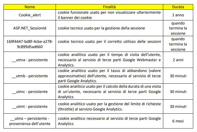 Salvo per i cookies tecnici che scadono al termine della sessione, gli altri cookies scadono dopo diverso tempo (vedasi tabella associata).