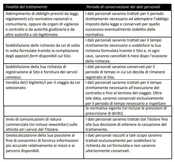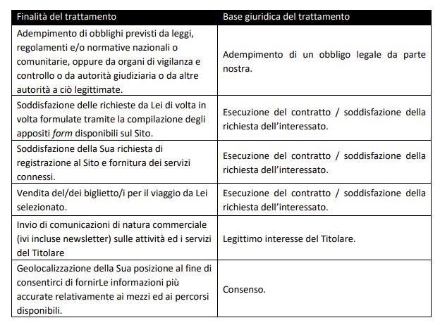 includere il Suo nome, data di nascita, indirizzo, indirizzo e-mail e numero di telefono, informazioni di natura finanziaria quali, ad esempio, quelle relative alla carta di credito, la Sua fotografia, posizione geografica, indirizzo IP o MAC o altri dettagli riguardanti l’utilizzo del Suo dispositivo mobile o computer portatile (in particolare quando Lei si registri per utilizzare il servizio Wi-Fi a bordo dei mezzi).